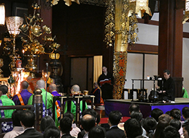 ご供茶式は、青年会議所のOBでもあられます茶道裏千家御家元 千宗室氏より、御本尊のご宝前にお抹茶をお供え頂きました。