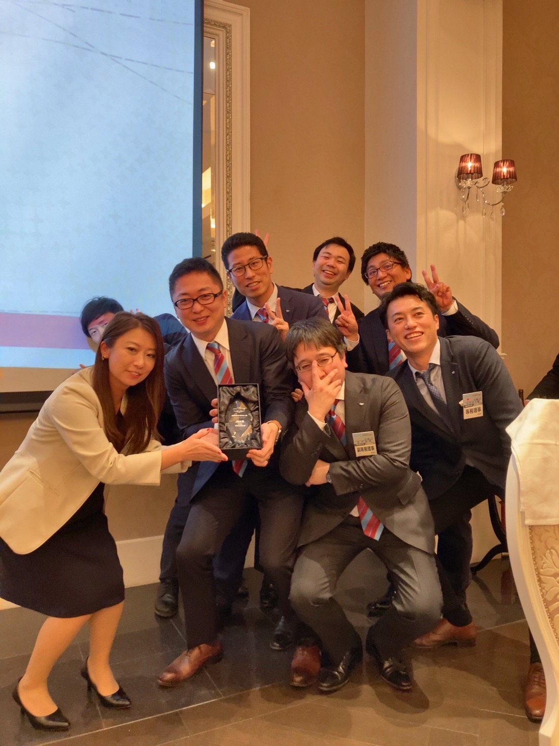 卒業生9名と現役メンバー総勢46名による卒業式となり、神園理事長が次年度稲葉理事長へバトンタッチをされるプレジデンシャルリースの引継ぎも行われました。