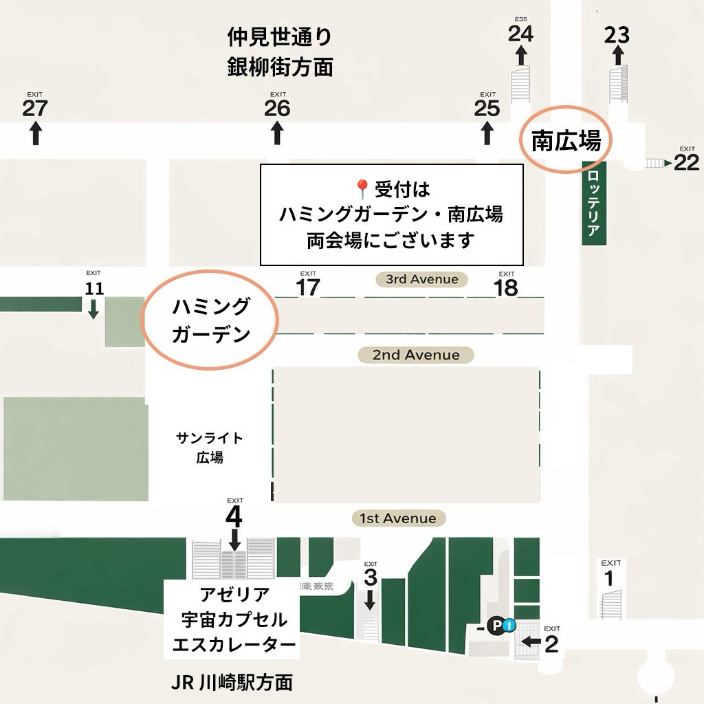 ハミングガーデン・南広場両会場に受付がございます。